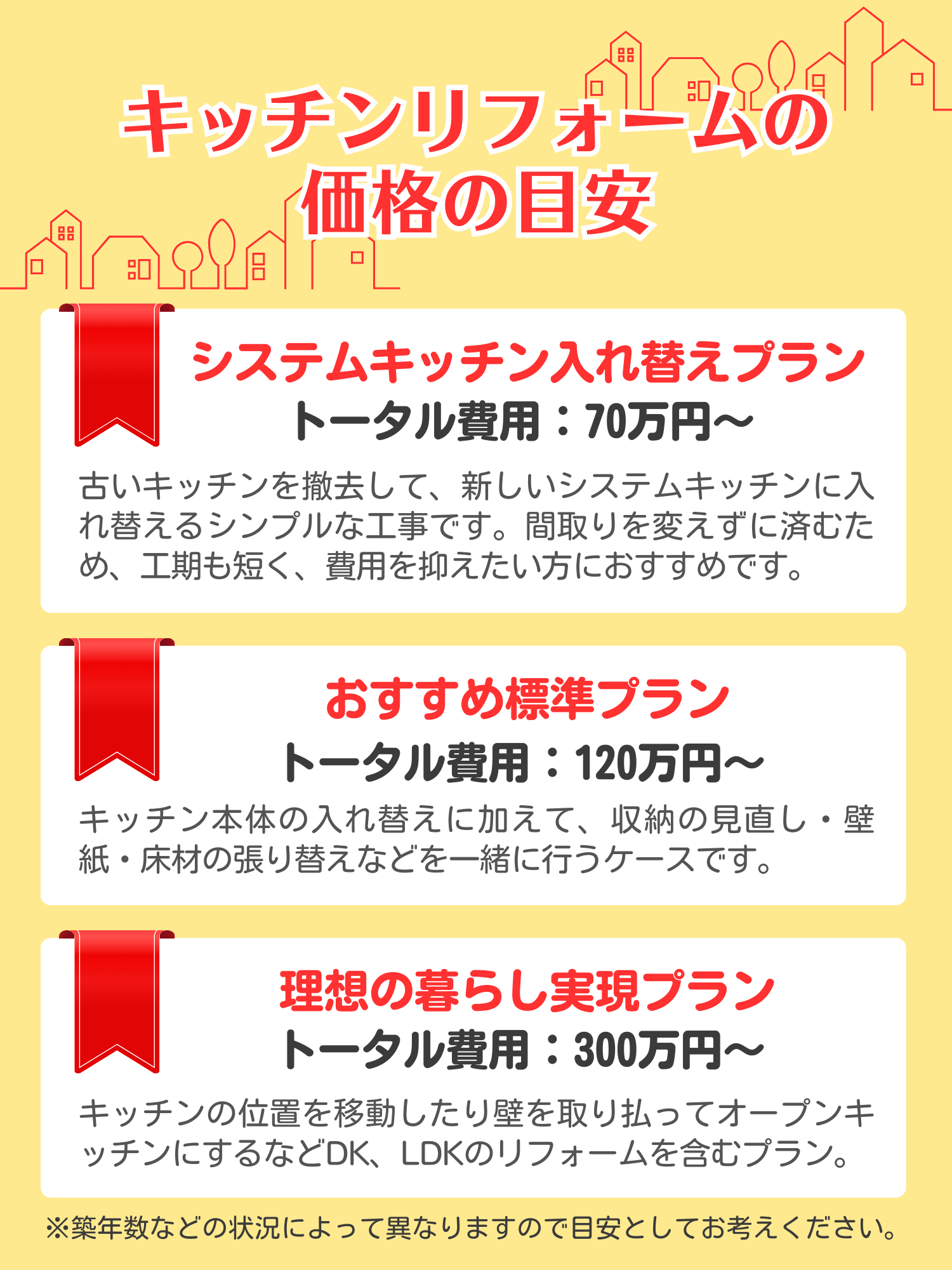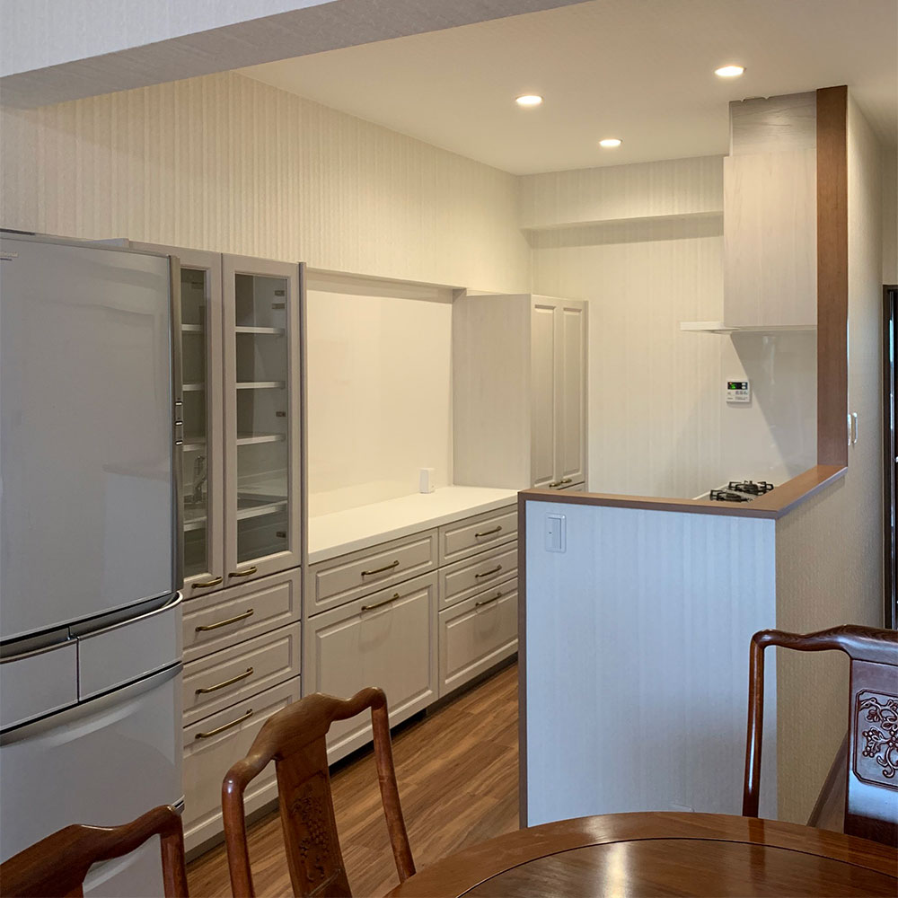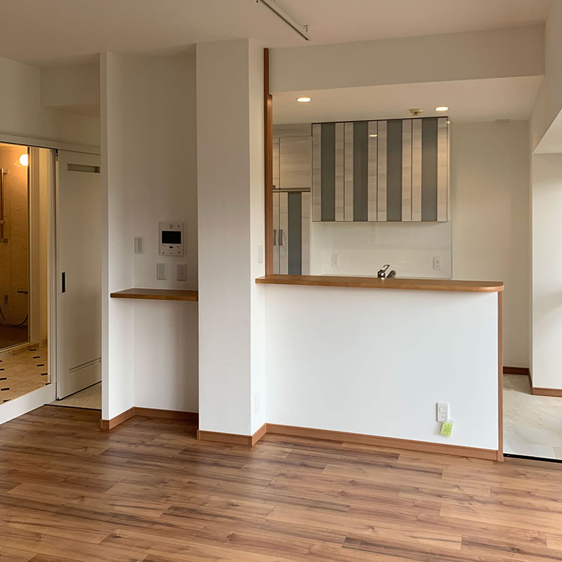 リフォーム内容 全室内装、水回り設備の交換、キッチンレイアウト変更を含むのリノベーション