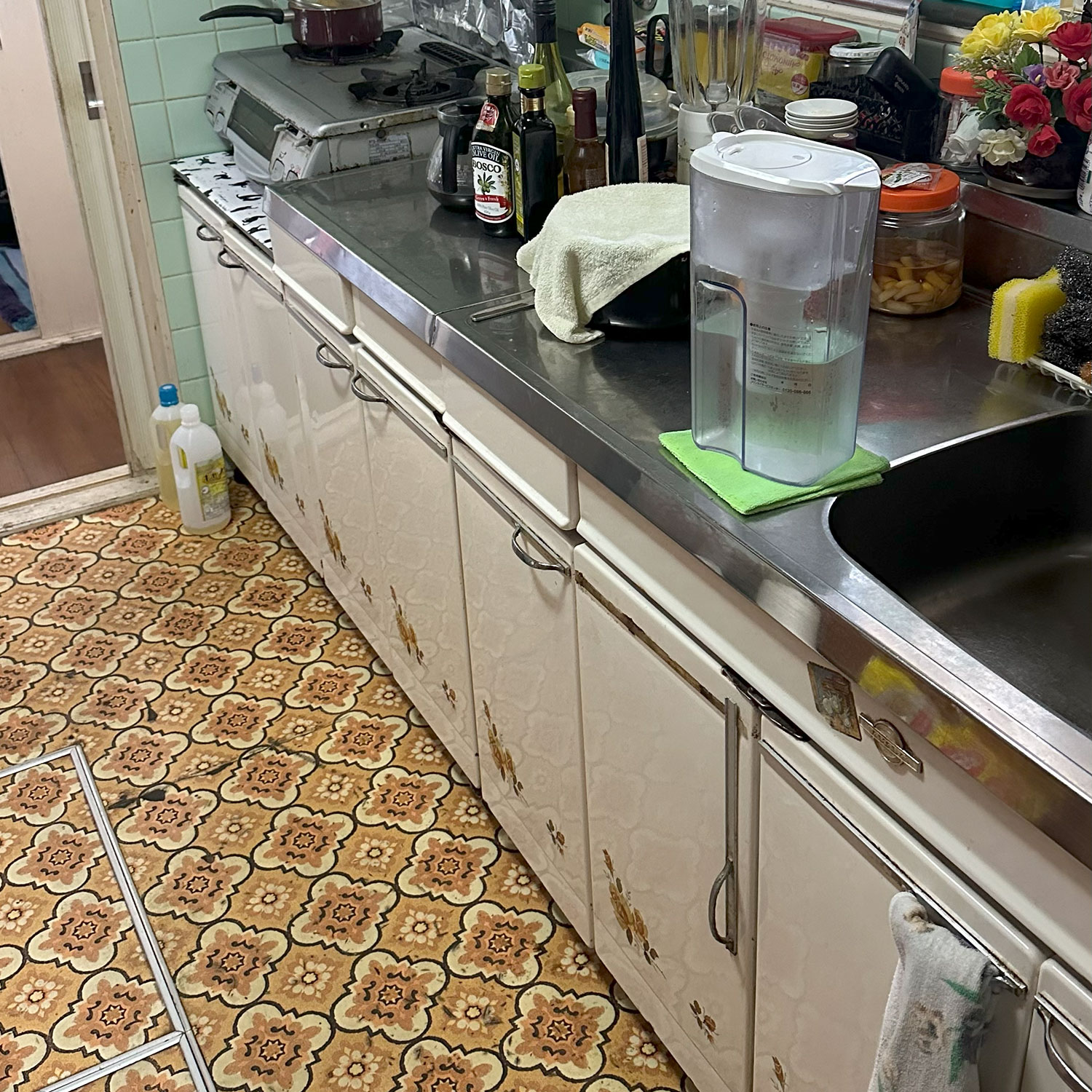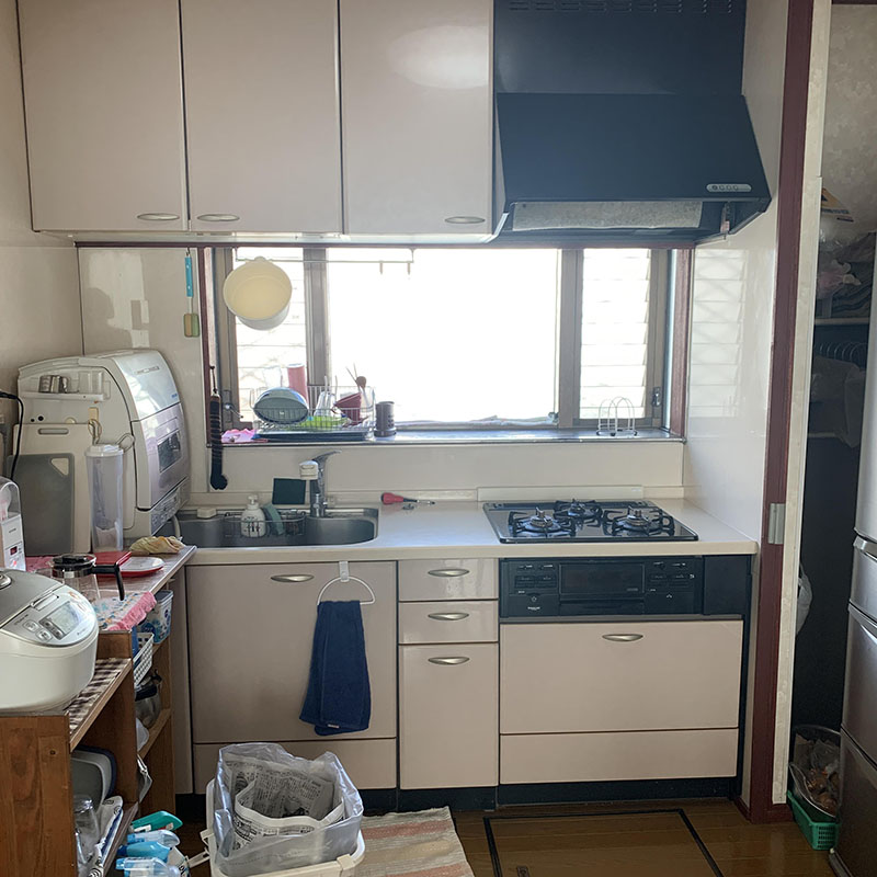 リフォーム内容 DKの内装、勝手口の撤去、外部壁補修、キッチンレイアウトの変更・設置
