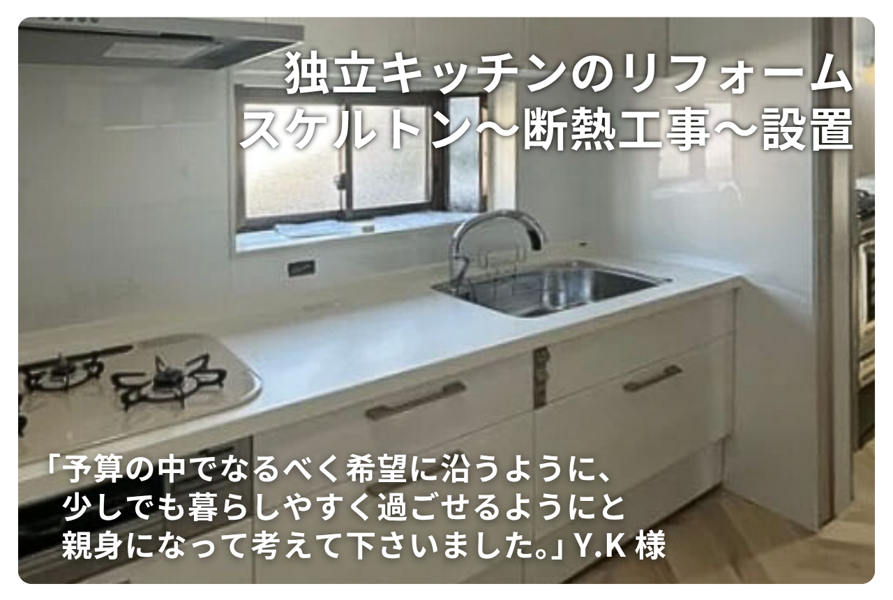 リフォーム内容 独立キッチンの工事、床壁解体、断熱工事、床壁設置